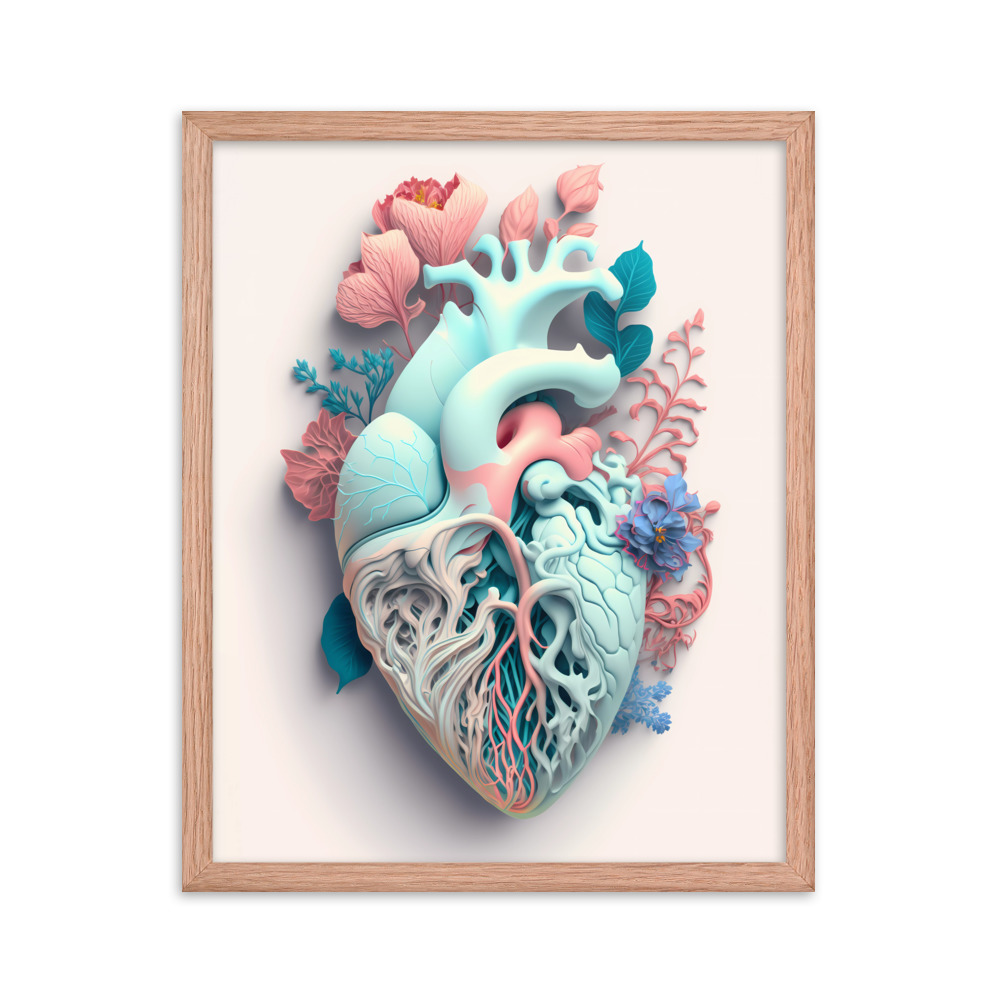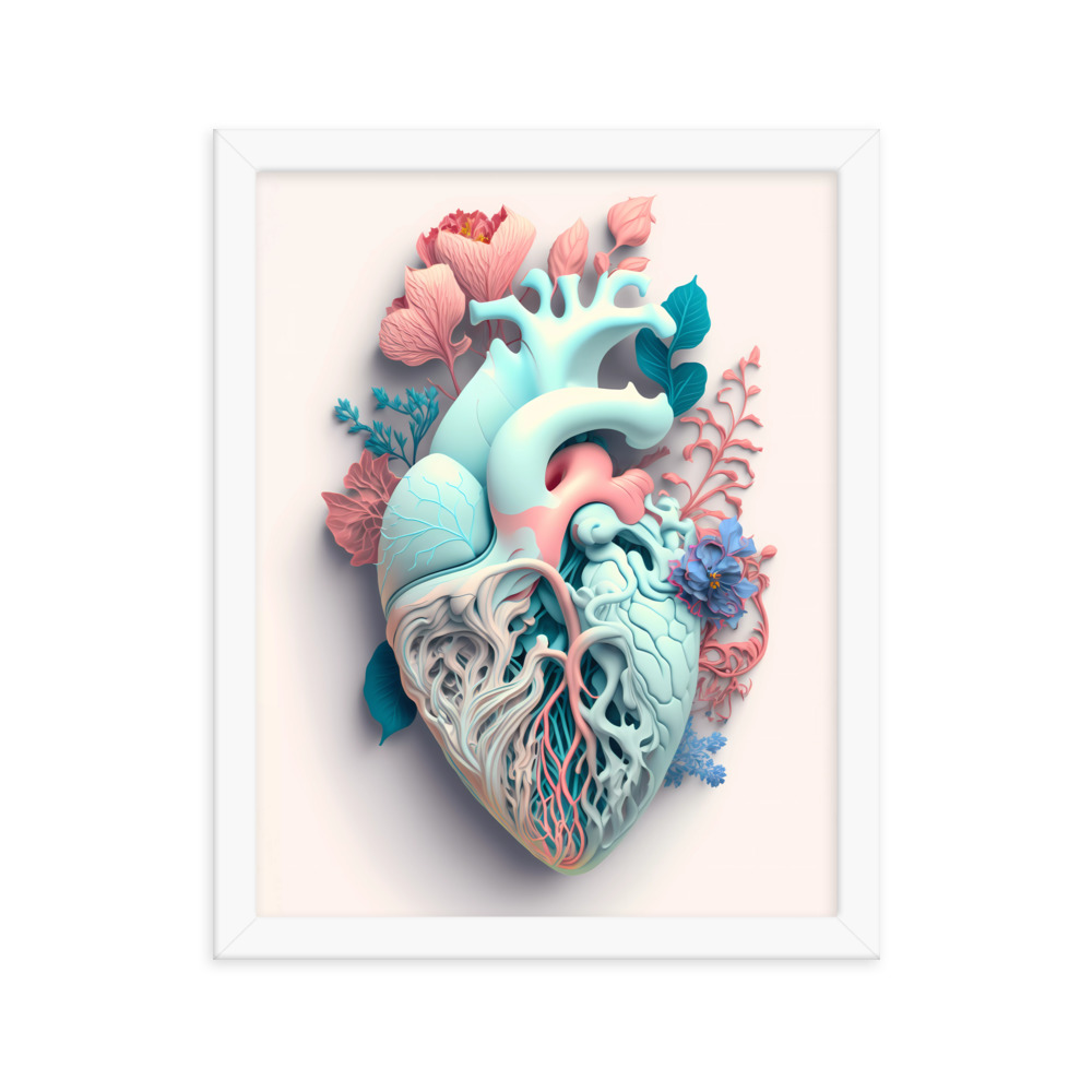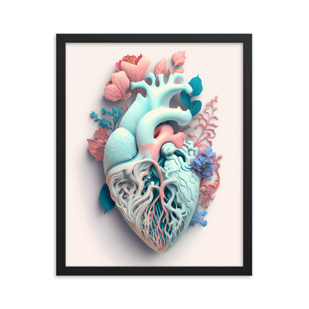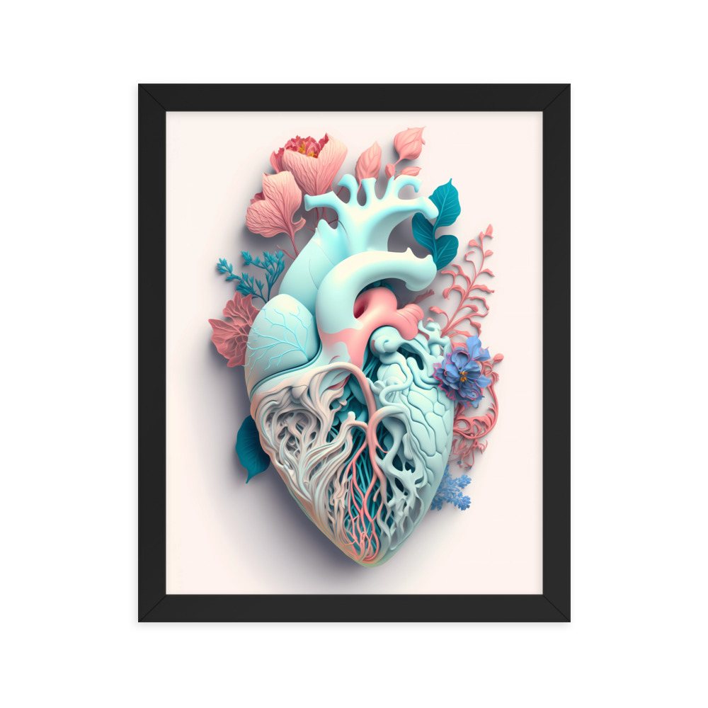 Matte Paper Framed Poster Anatomical Heart with Flowers ig0227i7