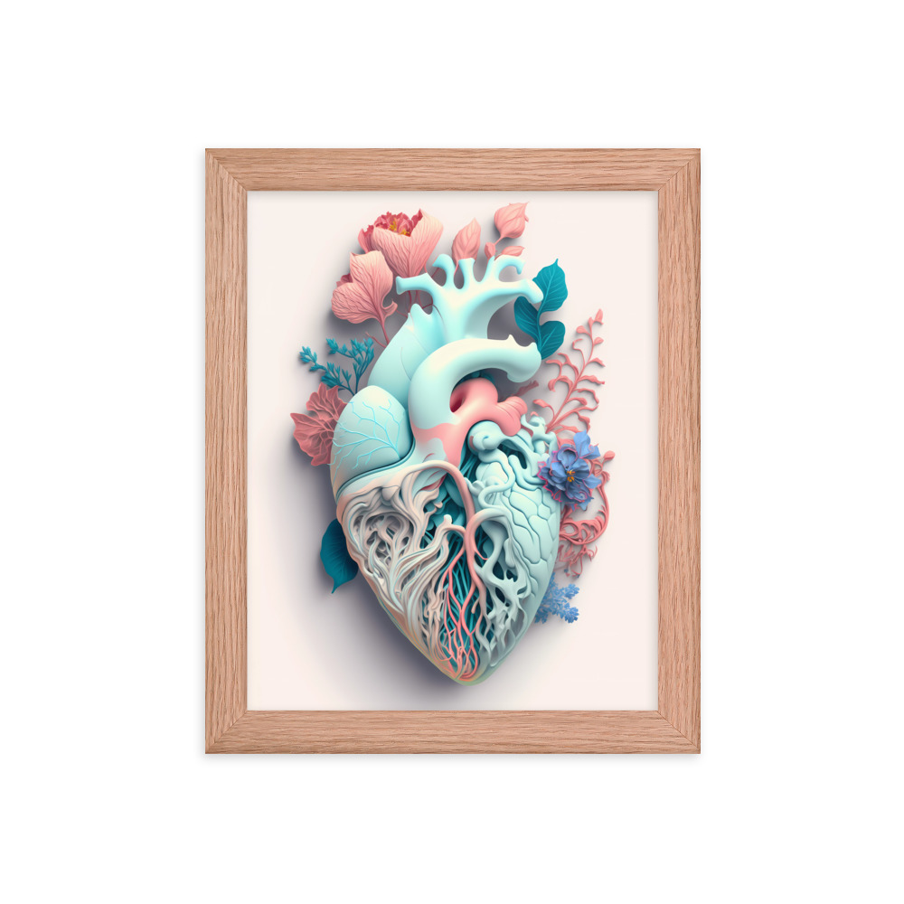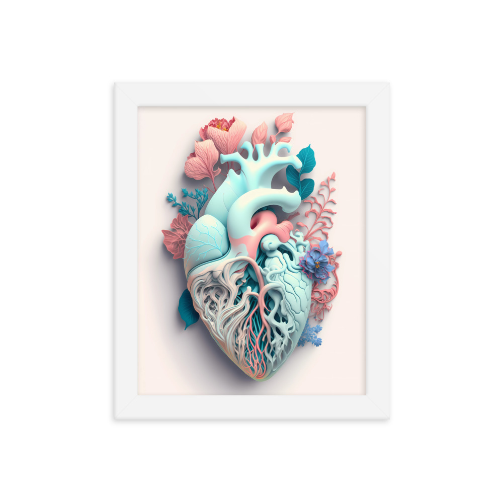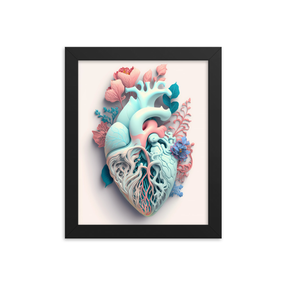 Matte Paper Framed Poster Anatomical Heart with Flowers ig0227i10