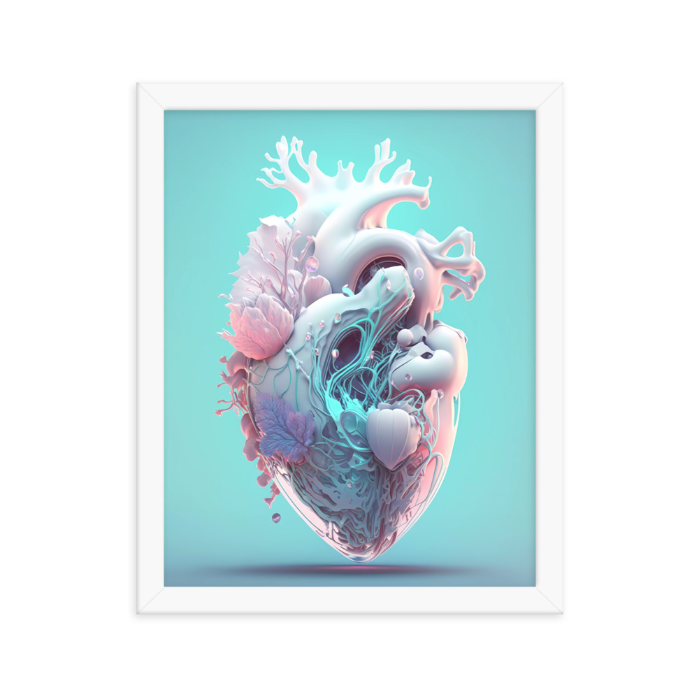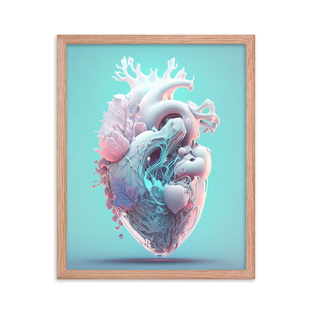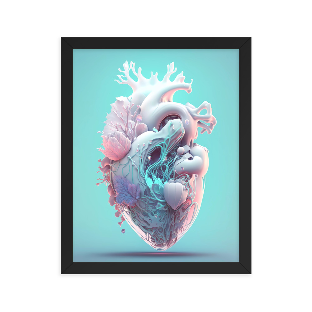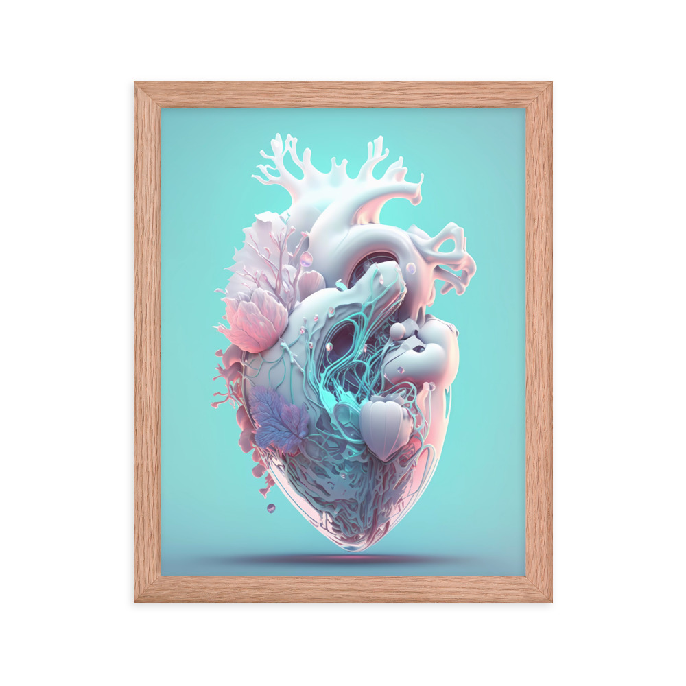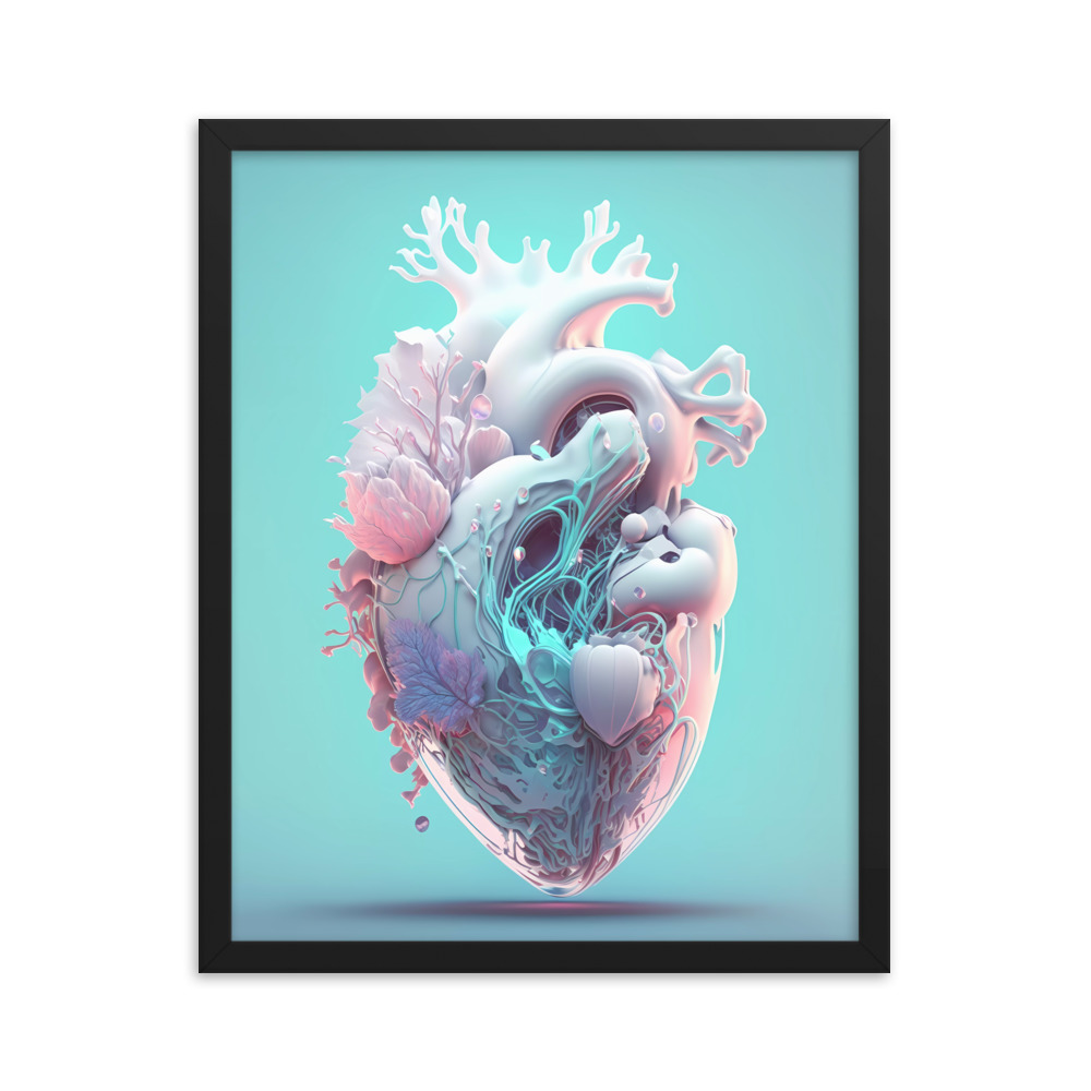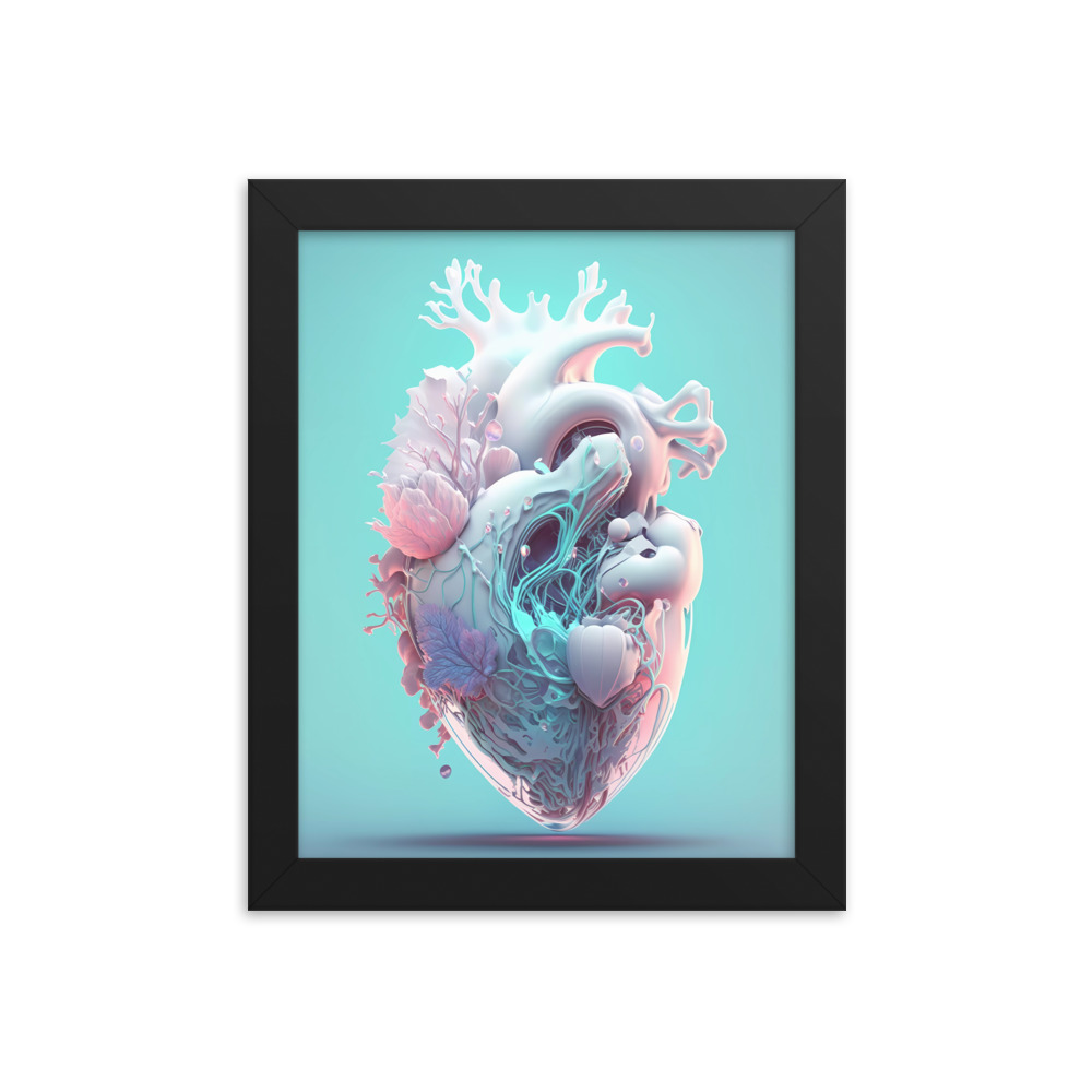 Matte Paper Framed Poster Anatomical Heart with Flowers ig0227i1