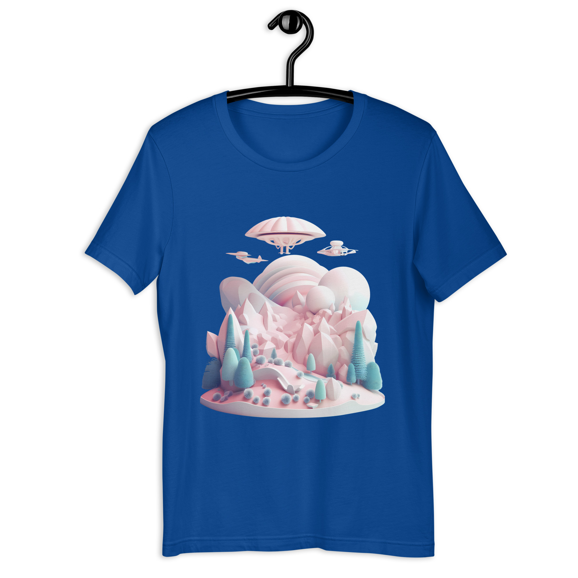 Be the first to review “Unisex Nice Cute Alien Flying Saucer UFO 3D Isometric Mountains Long-Line T-Shirt”
